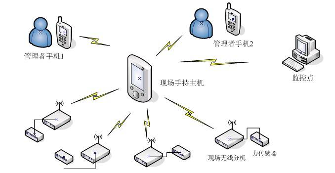 WPRS-201无线力测量系统是上海歌锐网络公司针对现场采集、监测压力、拉力等参数的需求,开发的一套手持式高精度无线压力测试系统 ,其系统应用框图如下: